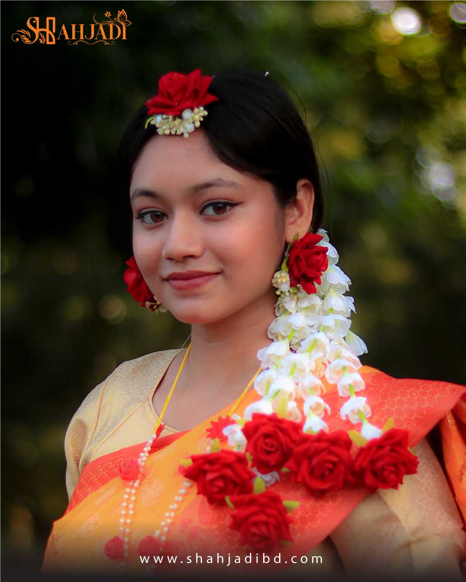 Gaye Holud Bridal Hair Garland – ফুলে সাজানো চুলের ব্যাকপিস Gaye Holud Jewelry