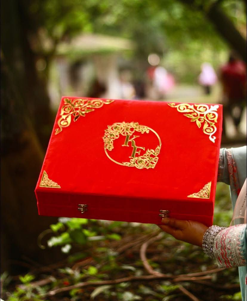 Red Premium Velvet Nikah Box – Elegant Packaging for Nikah Combo Set